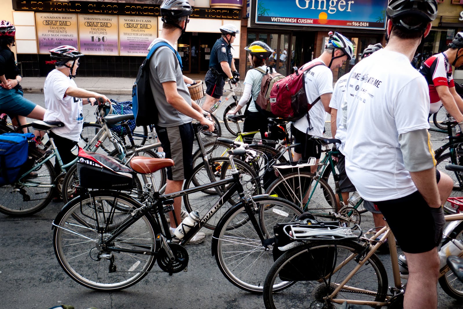 That's my bike at Bike to Work day back in May. Oddly enough, I didn't start actually biking to work until the weekend after. I just couldn't resist the opportunity to take part in a mass ride down Yonge St. (with police bike escort, no less).